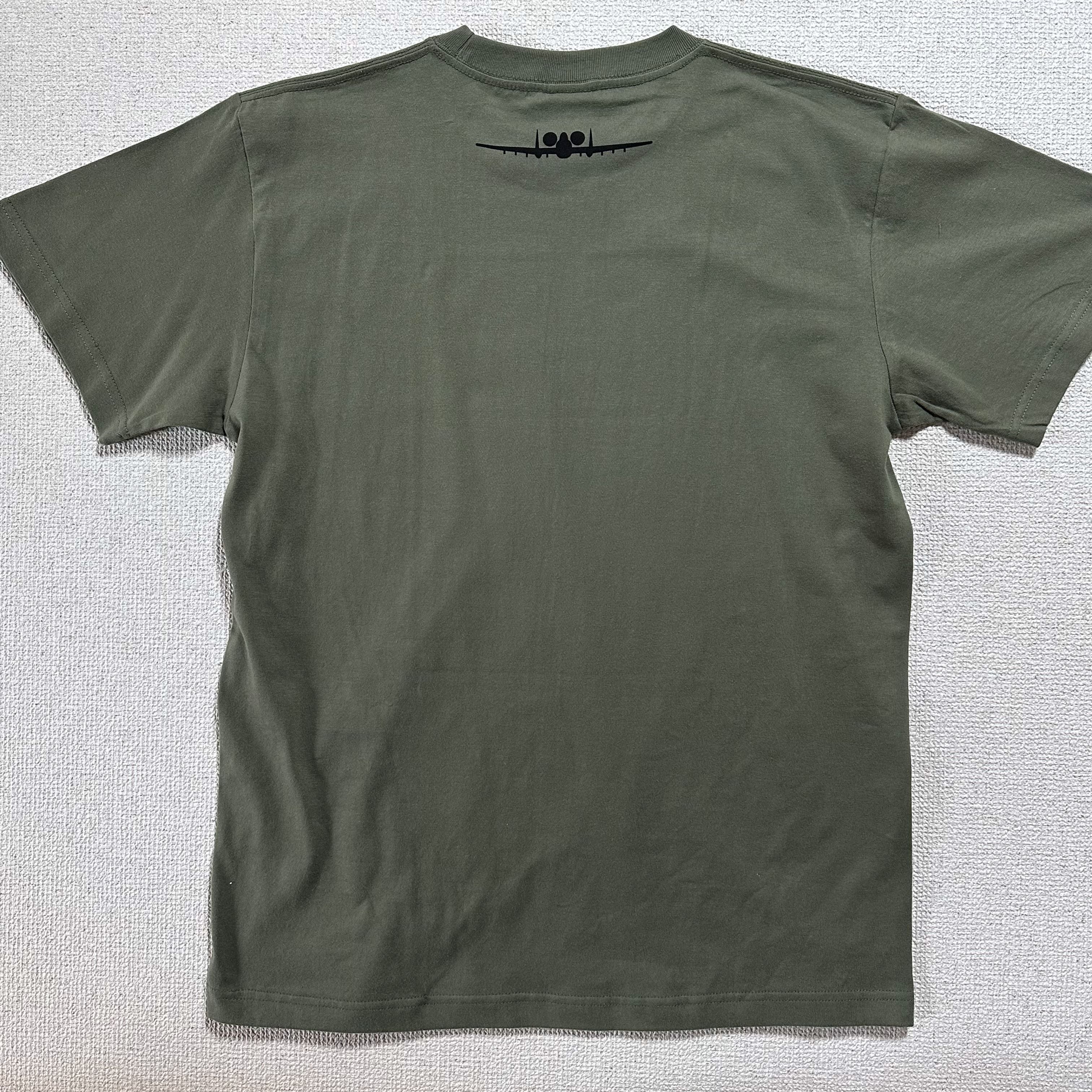 5.6oz ハイクオリティTシャツ使用。 GAU-8アベンジャーの 発射口をドーンとプリント。首元にA-10の機体シルエット。